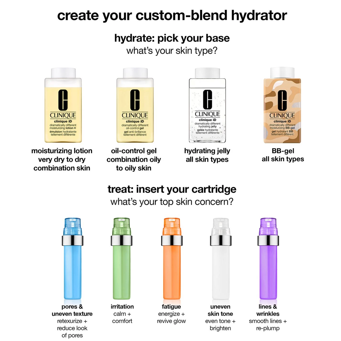 What It Is: A first-of-its-kind custom-blend hydrator that hydrates and treats your main skin concern, your way. Combines a hydration base of Dramatically Different™ Moisturizing BB-gel with Active Cartridge Concentrate for Fatigue.