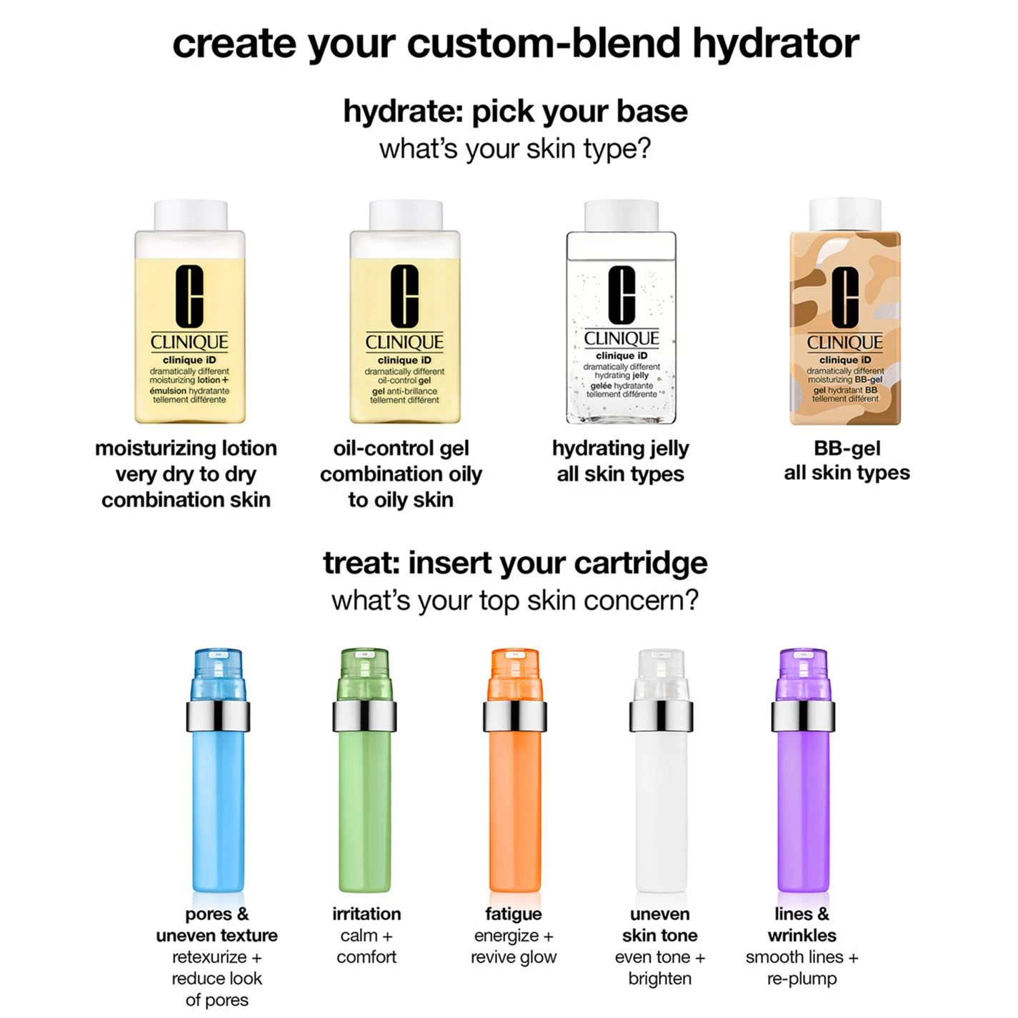 Set Includes: –Clinique iD Dramatically Different Moisturizer, 3.9 fl. oz. –Clinique iD Active Cartridge Concentrate, 0.34 fl. oz.