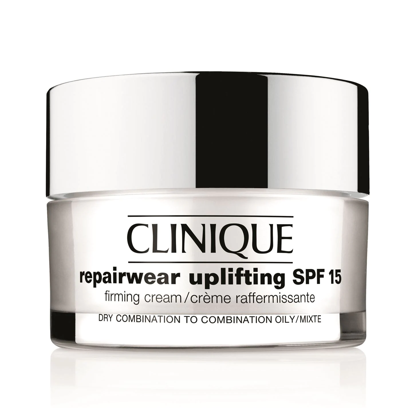 Clinique Repairwear Uplifting Firming Cream SPF15 Type 2 & 3 50ml. A light, richly moisturizing cream that visibly tightens, lifts and firms the face and neck to rebuild skin`s youthful appearance with the added important SPF15 protection benefit.